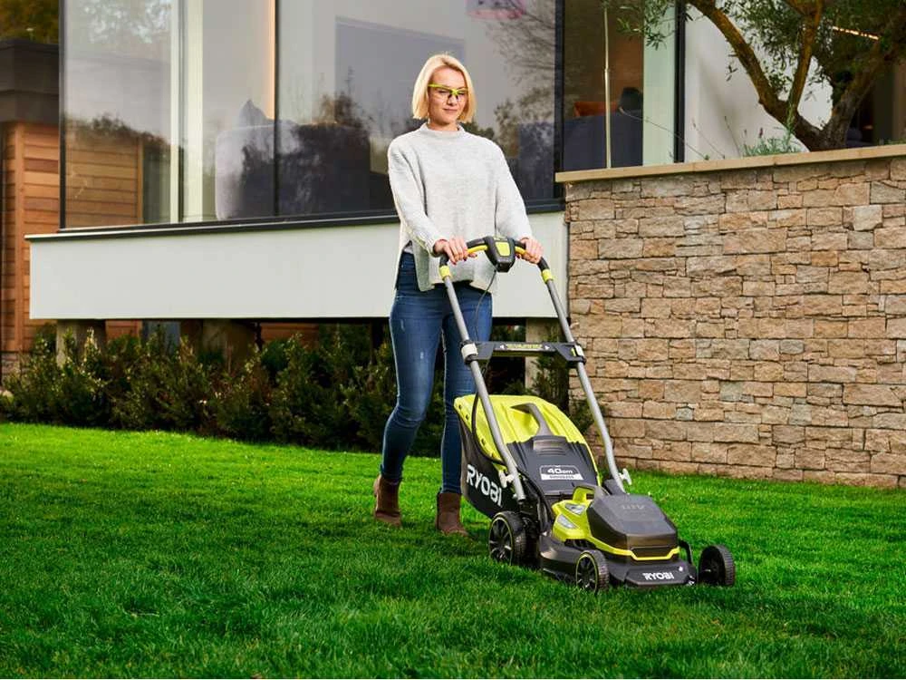 La tondeuse à gazon sur batterie RYOBI RY18LMX40A-240 est l’idéal pour tondre le gazon sans devoir s’encombrer du poids du moteur thermique, et sans être gêné par un fil électrique.