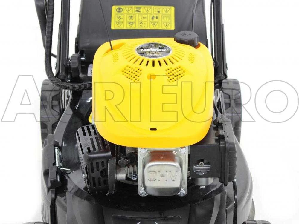 Elle est équipée d’un nouveau moteur produit par la même société Mowox de 98.5 cm3 de cylindrée monté sur le large châssis qui est réalisé en acier. la largeur de coupe est de 43 cm.