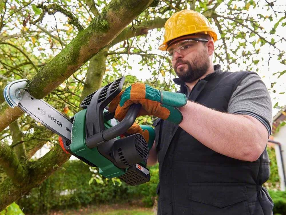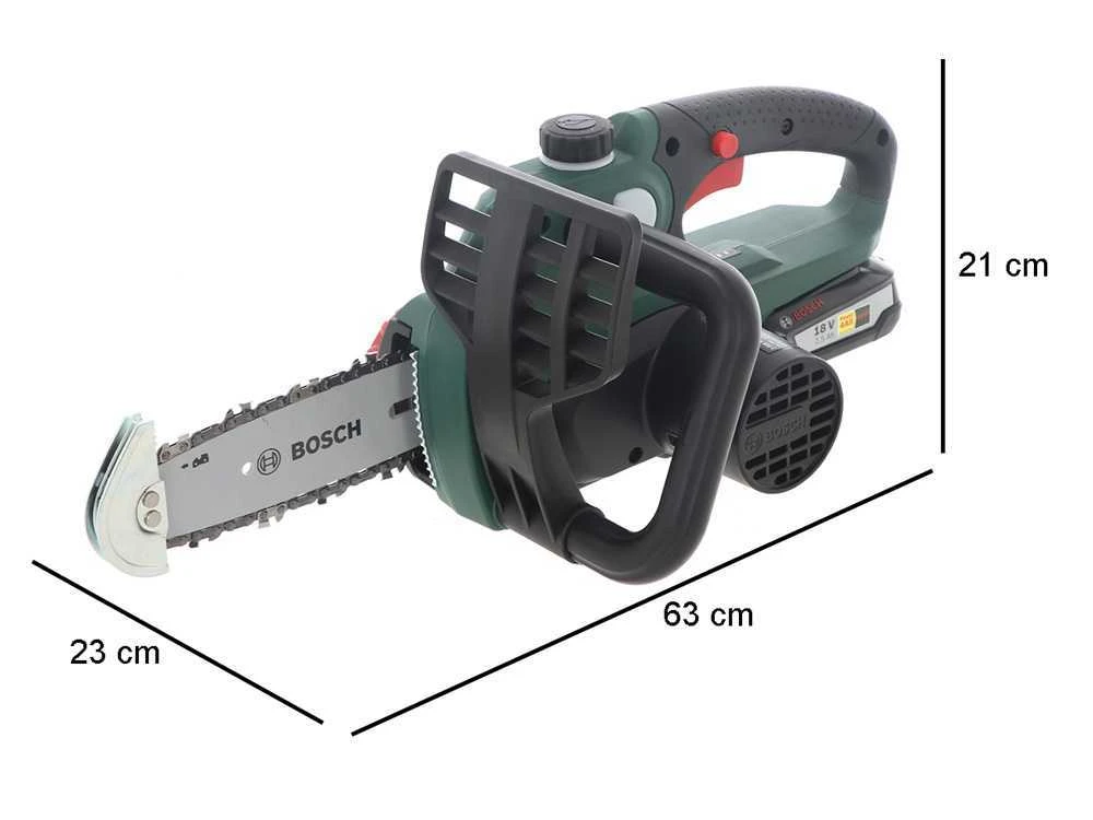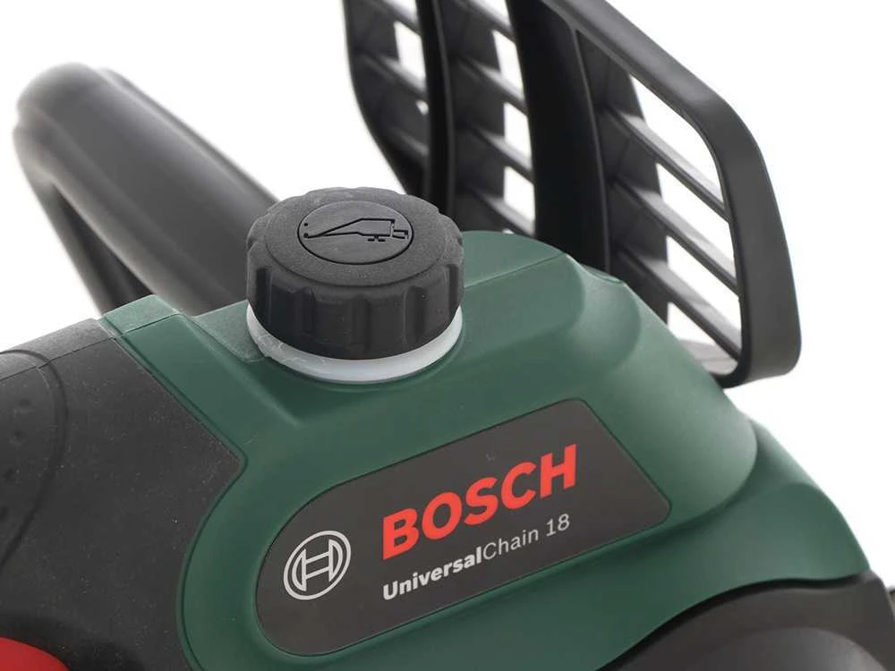 La tronçonneuse électrique à batterie BOSCH UniversalChain 18 reçoit l’énergie par une puissante batterie de 18 V et est alimentée par un moteur électrique BOSCH avec système SDS.