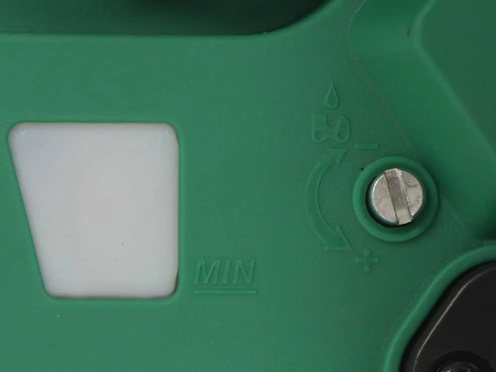 Détail de la vis pour le réglage de l’huile de lubrification.