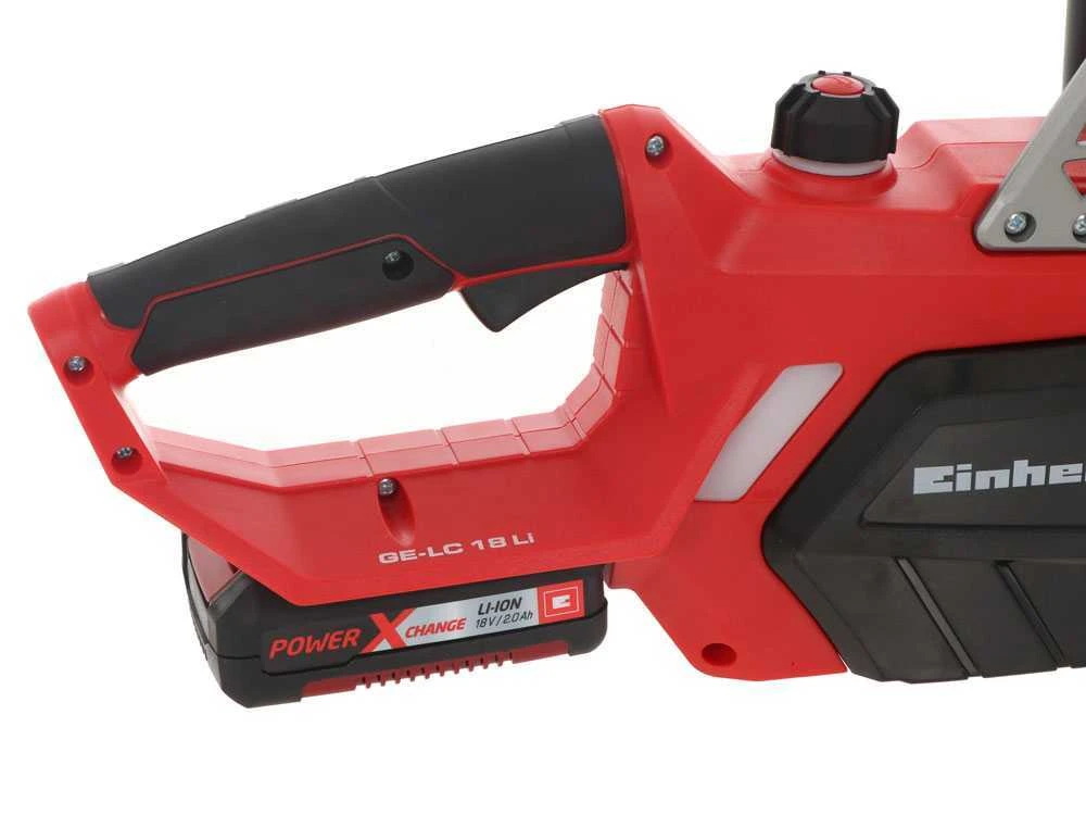 Le kit comprend la tronçonneuse à batterie GE-LC 18 Li : un des produits Einhell de pointe, uni à la qualité du guide-chaîne et de la chaîne OREGON. La tronçonneuse maniable est un outil pour élagueur et abattre des arbres de petites dimensions et de moyenne grandeur, pour préparer votre bois de chauffage et pour raccourcir ou couper du bois.