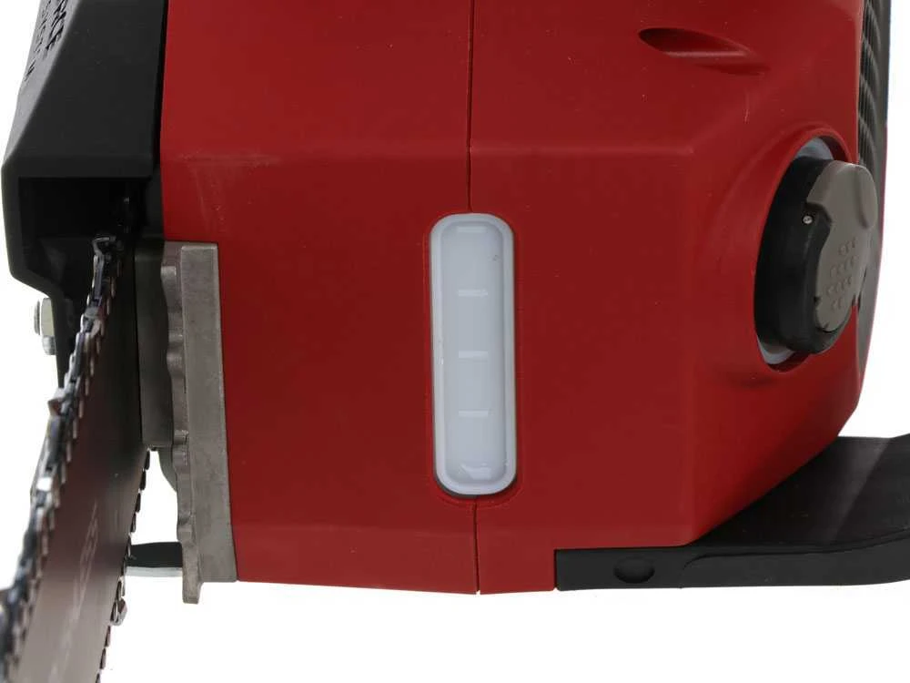 Réservoir de l’huile de chaîne avec indicateur transparent de niveau (permet la visualisation constante du niveau durant l’utilisation).
