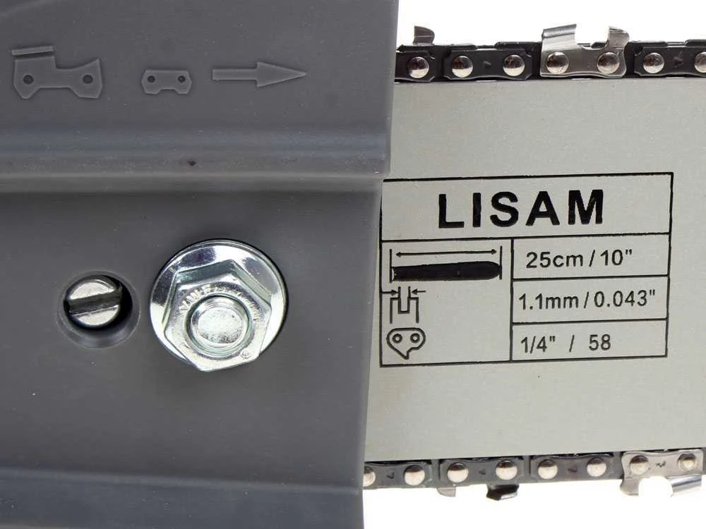 La tronçonneuse Lisam SG 22 est dotée d’une poignée arrière pratique, d’un bloc interrupteur, d’une protection pour la main/frein de chaîne, de dents et d’un réservoir d’huile. La chaîne est facile à tendre grâce à la vis prévue à cet effet.
