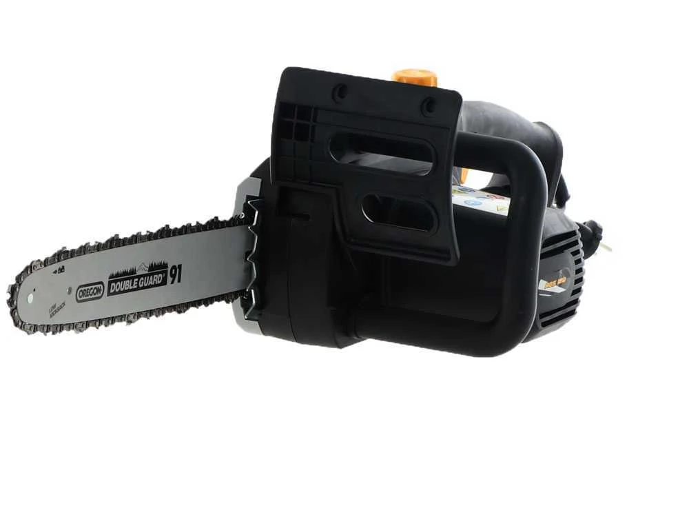 Le moteur électrique de 1800 watts à haute performance, alimente un guide de 35 cm, assez large pour couper aisément aussi les troncs les plus résistants.