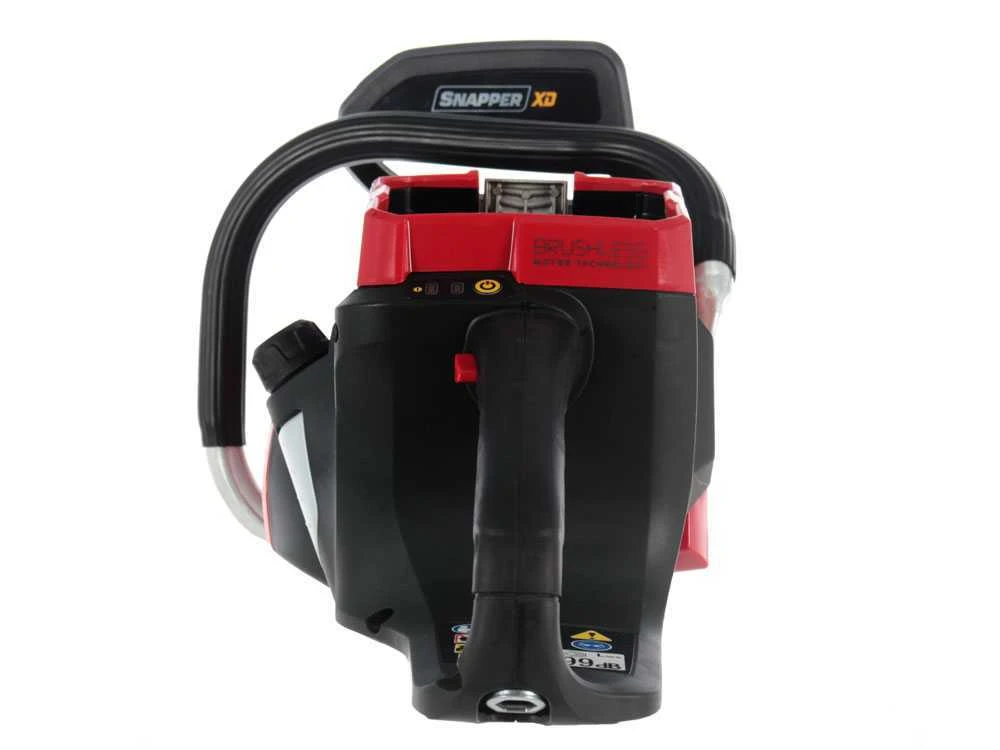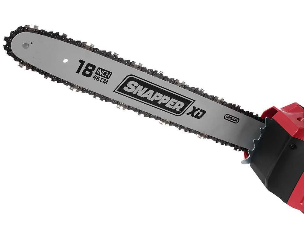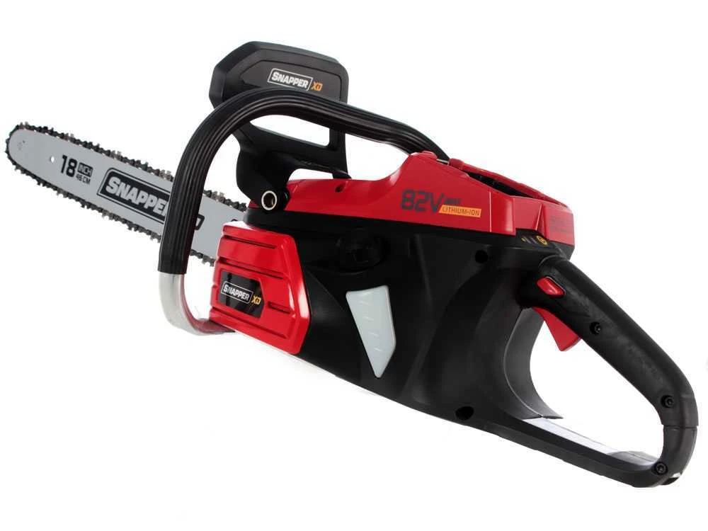 La tronçonneuse électrique Snapper utilise la puissante technologie 82V alimentée par batterie aux lithium-ions de qualité supérieure.