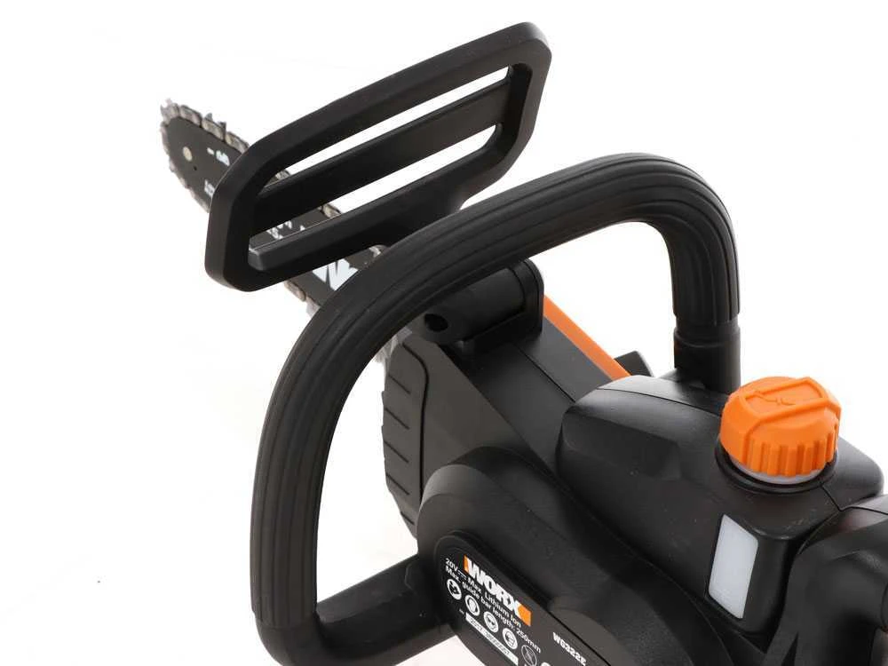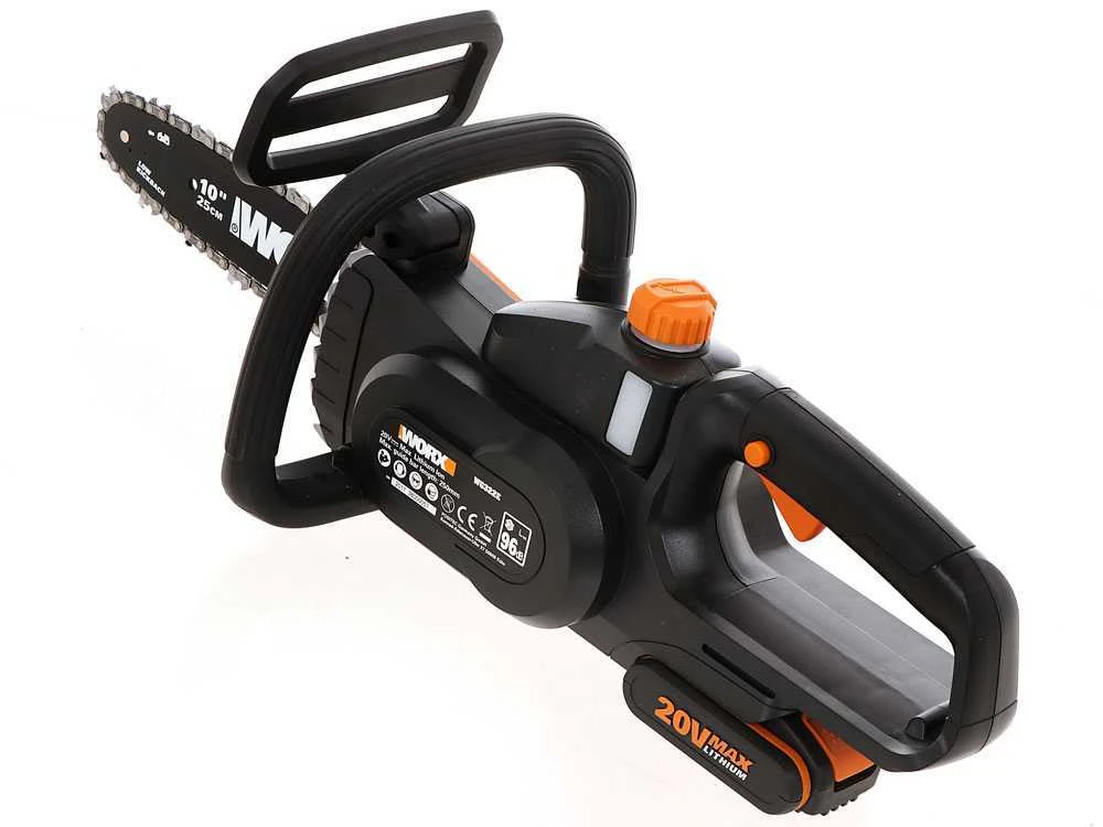 La tronçonneuse électrique WORX WG322E.9 20V à batterie de 2 Ah est beaucoup plus simple à utiliser par rapport aux tronçonneuses thermiques classiques. Pour ceux qui ont besoin de couper du bois et n’ont pas de prise de courant à disposition, elle représente la meilleure solution. Son poids et sa praticité n’ont pas d’égal par rapport aux autres modèles. Cette tronçonneuse électrique est vraiment très légère, elle ne pèse que 3 kg avec la batterie comprise.