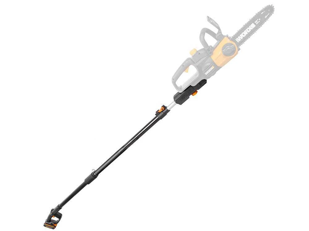 Cette tronçonneuse est un produit 2 en 1 : il est possible d’appliquer la perche extensible de 3 m qui se trouve dans les accessoires associés (vendus séparément) et cette tronçonneuse se transforme en une perche d’élagage pratique.