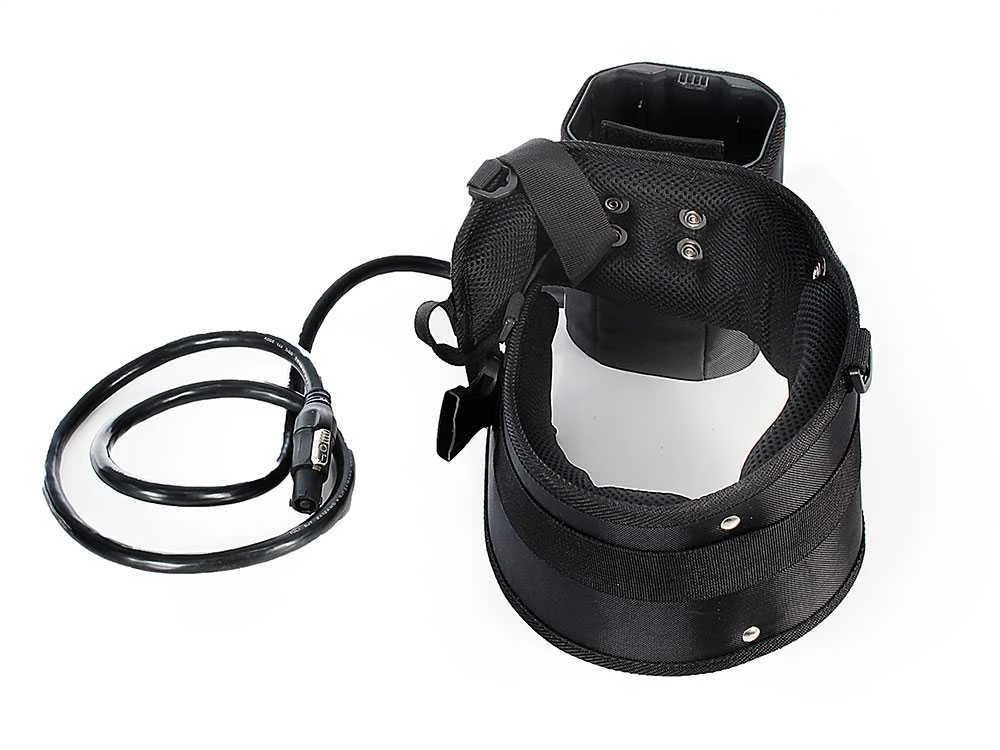 Ceinture d’alimentation rembourrée avec connexion-déconnexion rapide de la tronçonneuse.