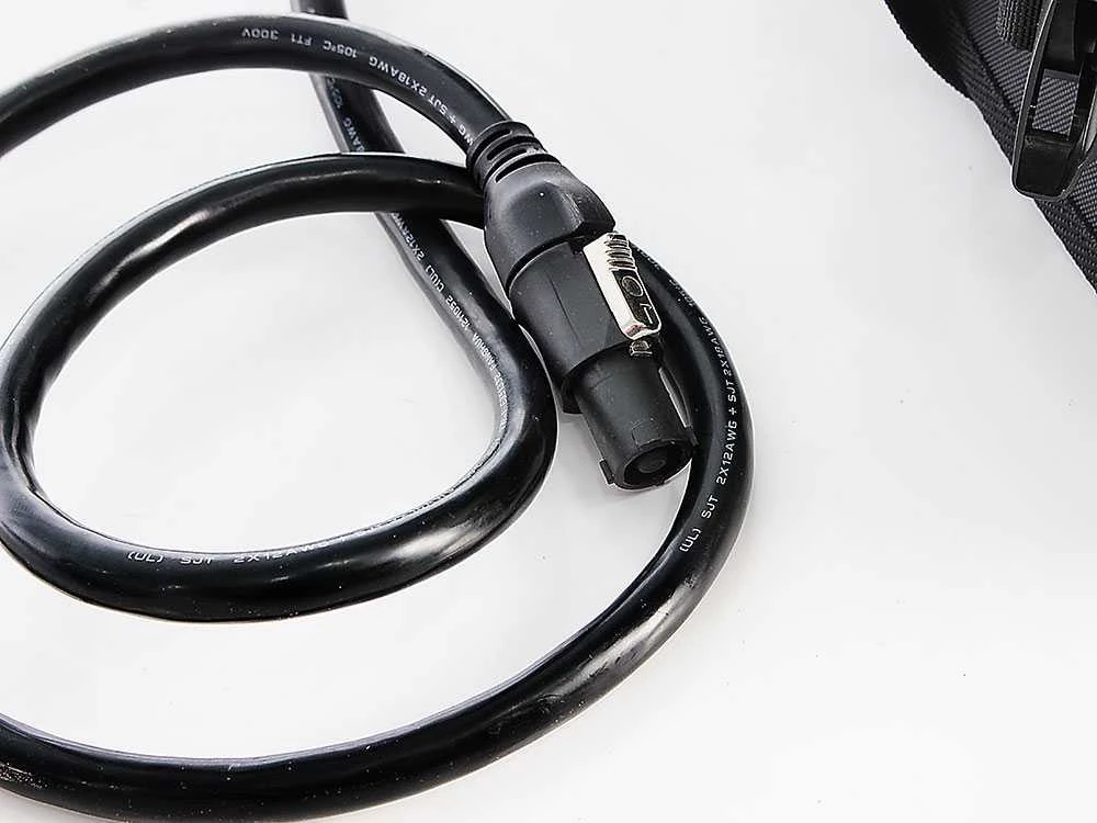 Une fois la batterie insérée à l’intérieur du compartiment [/x] de la ceinture d’alimentation, il suffira de connecter votre [x=358327] câble et votre tronçonneuse sera prête à l’emploi.