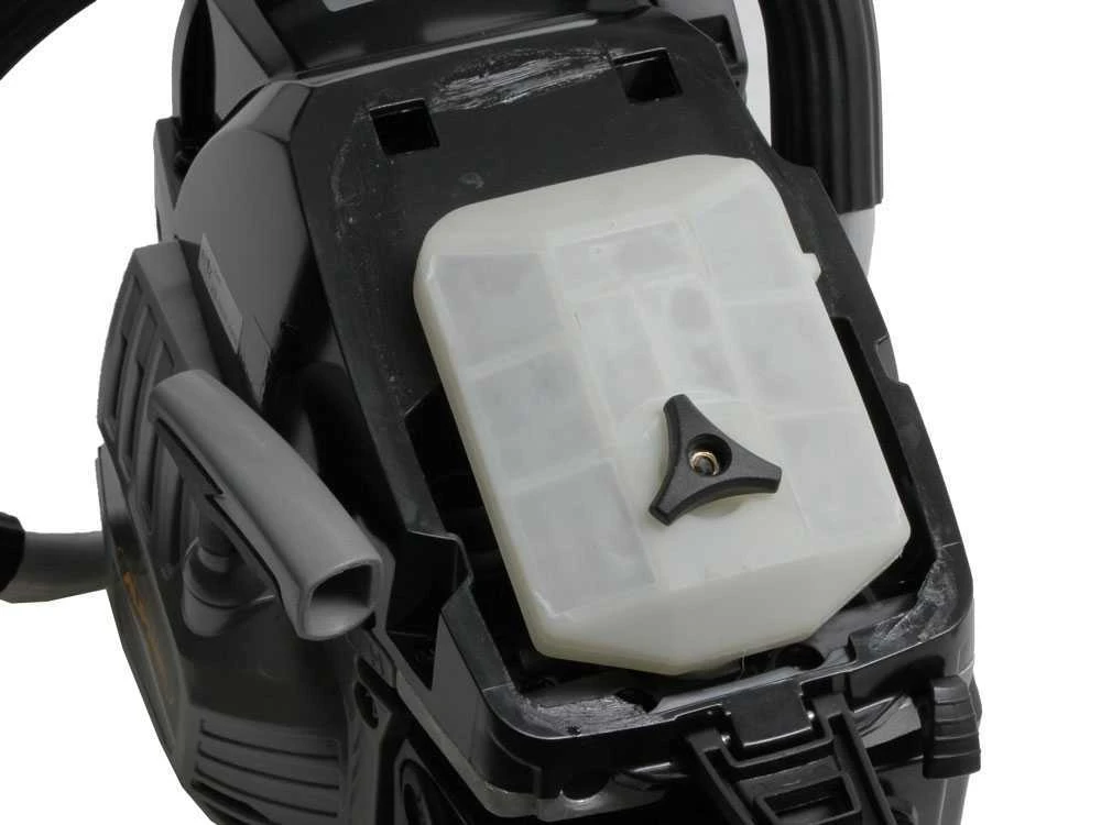 Détail du carter filtre à air démontable avec levier à cran pratique automatique. Le système d’inspection rapide, permet un accès rapide pour les opérations d’entretien.