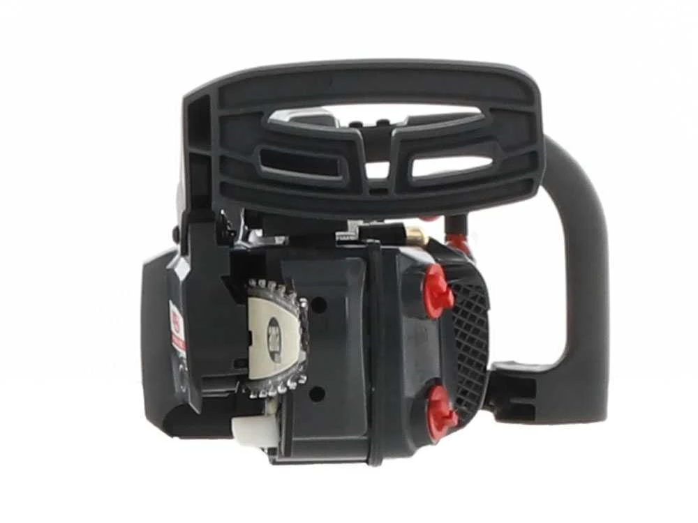 Parmi celles-ci on trouve le dispositif de sécurité du frein de chaîne, qui arrête le mouvement de la chaîne en cas de danger, en une fraction de seconde. Pour plus de sécurité il est nécessaire de maintenir sous pression les gâchettes présentent sur la poignée et facilement montable.