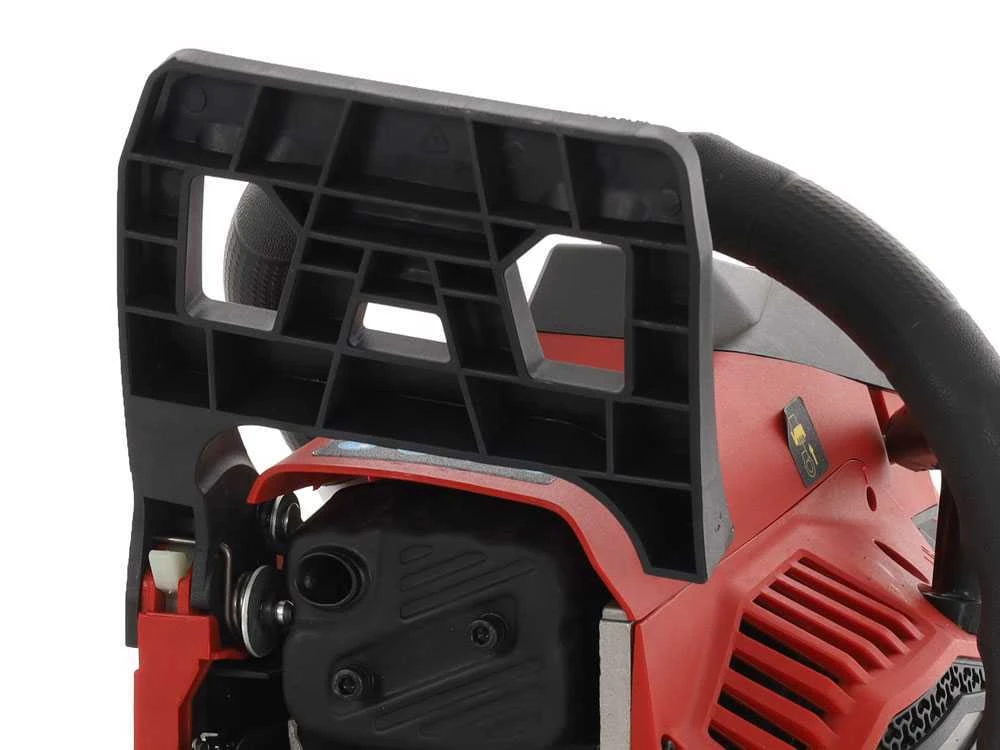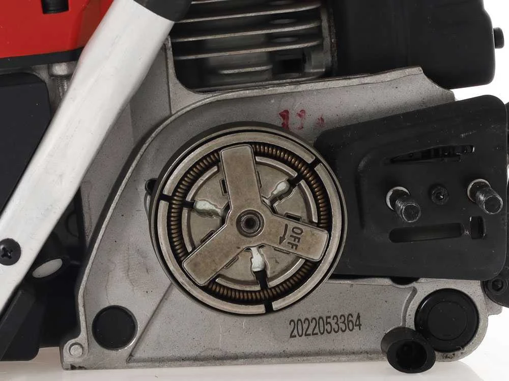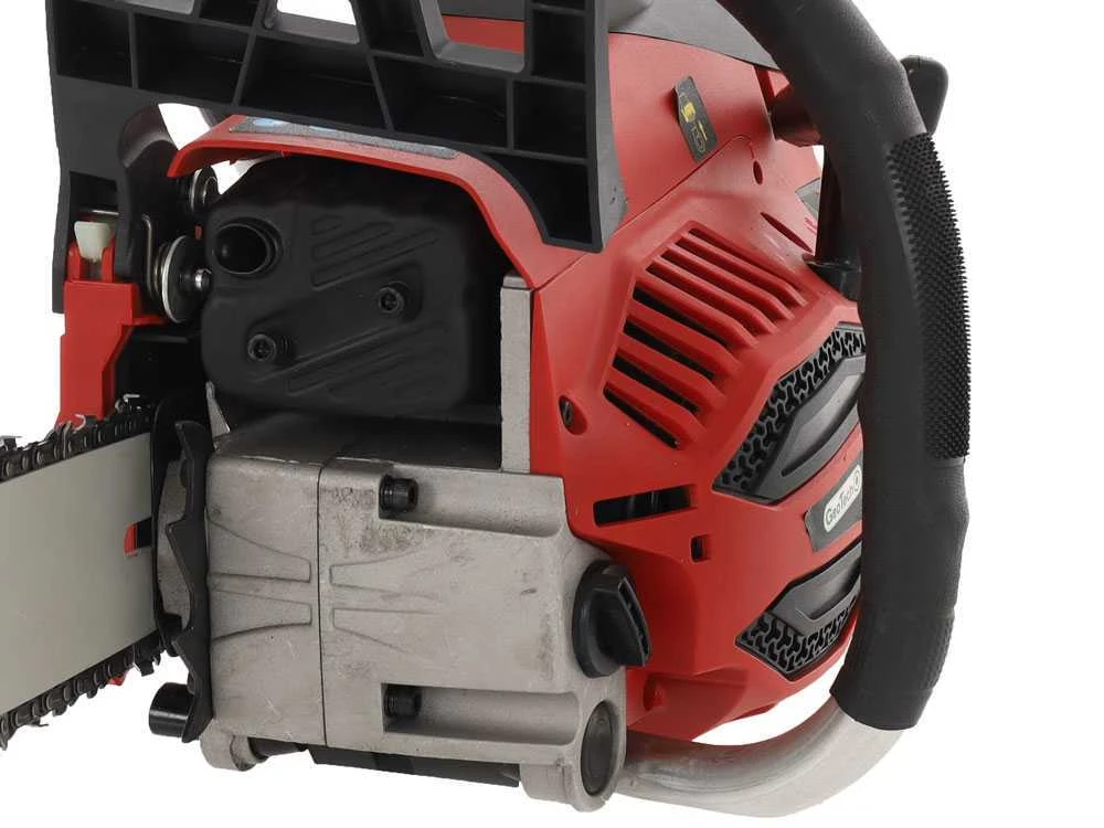 La tronçonneuse est équipée d’un puissant moteur de 40 cm3 de cylindrée à deux temps refroidi par air.