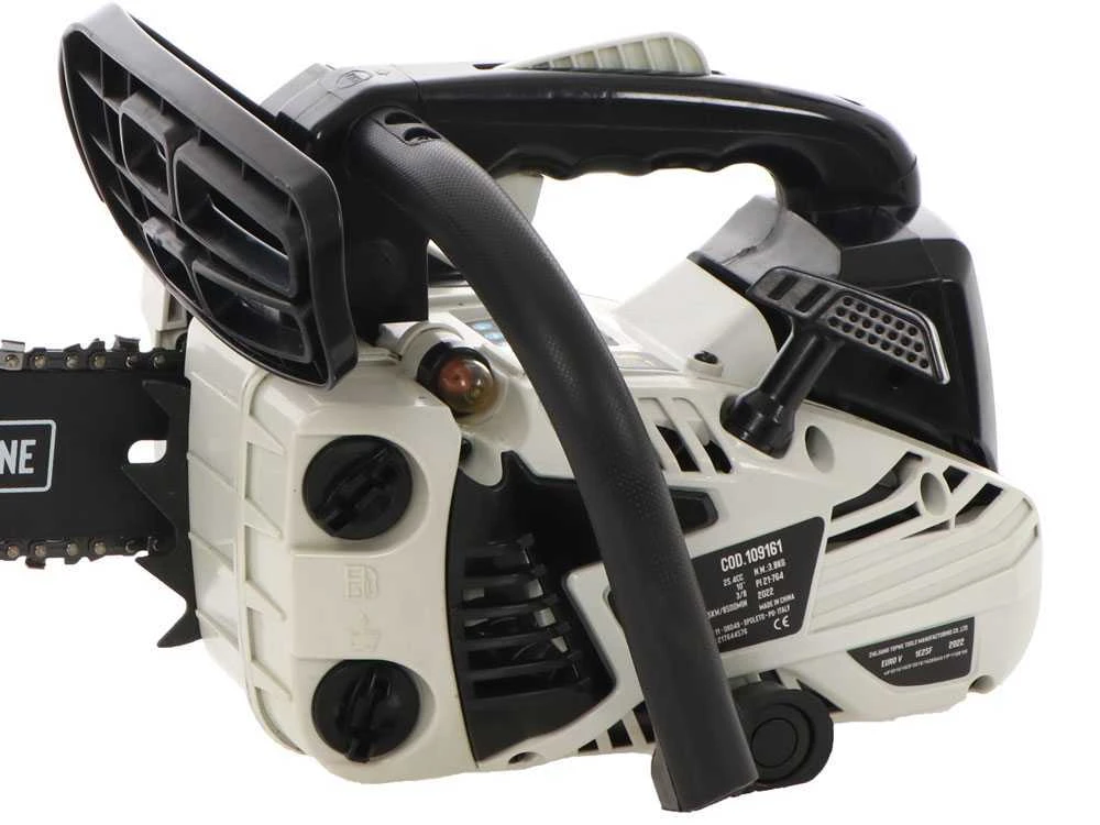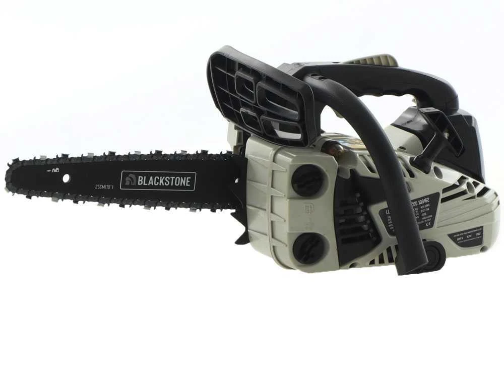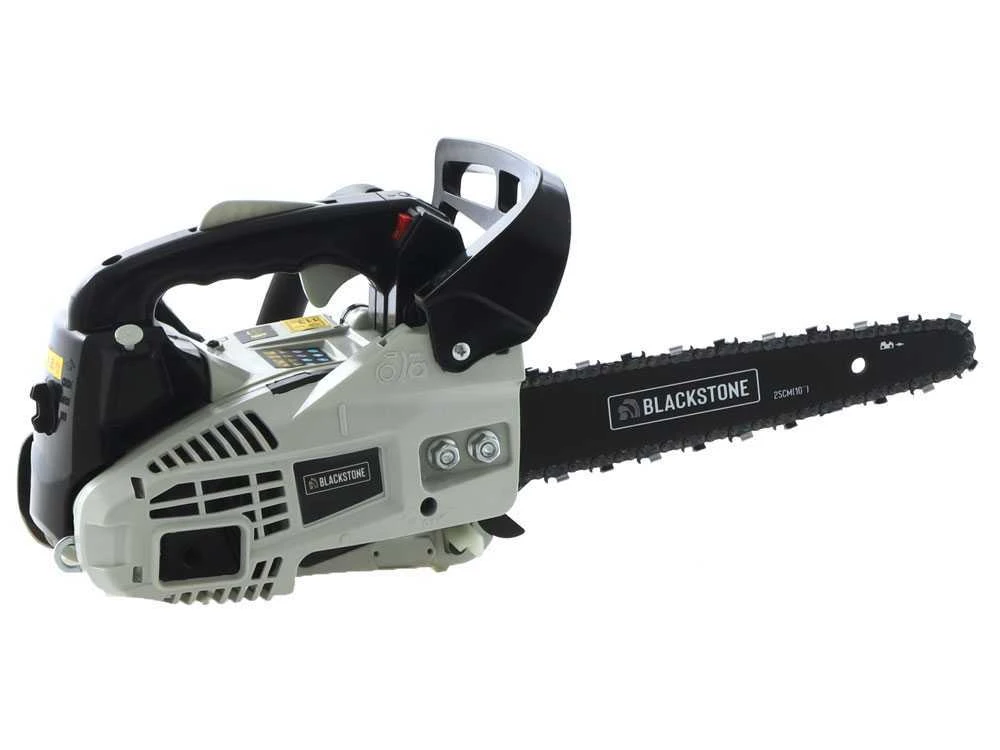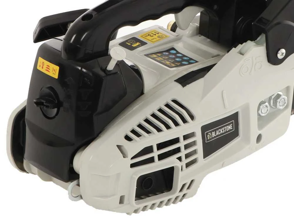 La tronçonneuse est livrée avec une barre carving BlackStone et une chaîne de 25 cm de longueur facile à monter couvre-chaîne fourni.