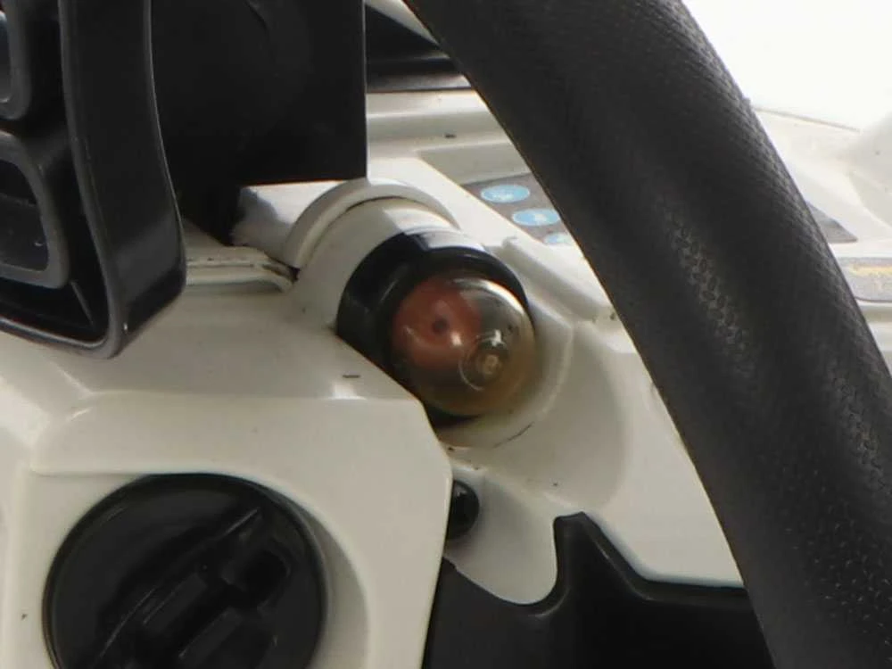 Sur la poignée se trouvent toutes les commandes pour le démarrage et pour l’utilisation de la tronçonneuse.