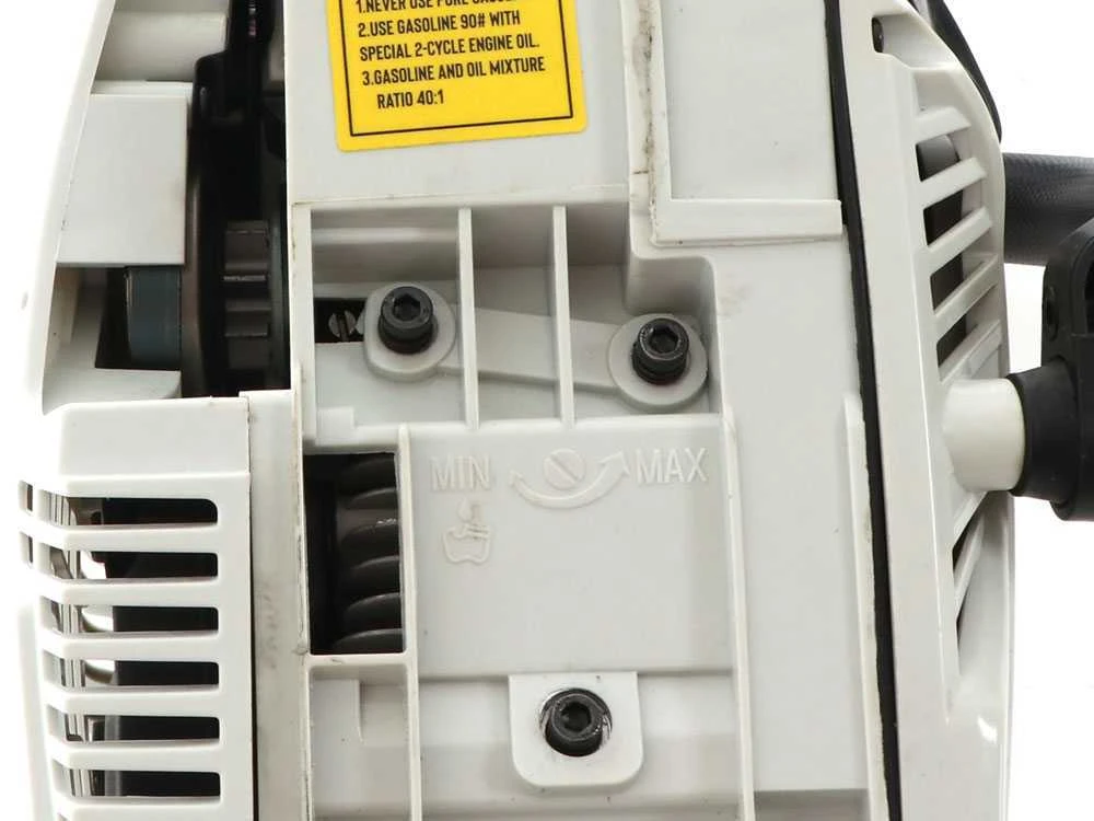 La tronçonneuse est équipée d’un moteur thermique à deux temps refroidi par air.