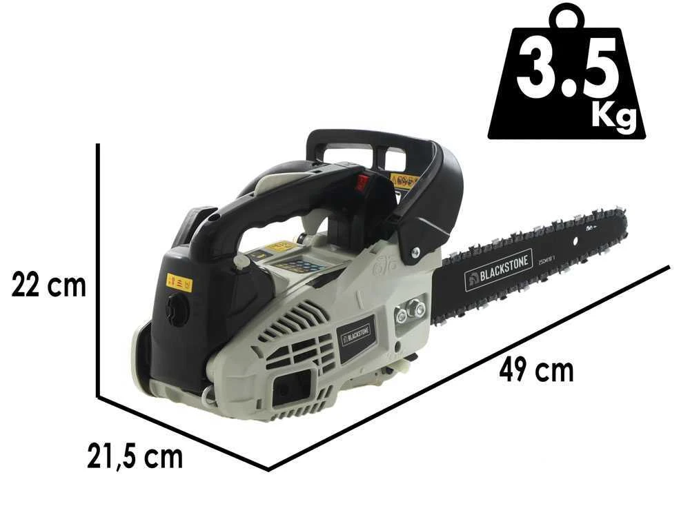 La BlackStone est une tronçonneuse robuste mais en même temps légère, son poids est de 3.5 Kg seulement (barre et chaîne incluses).