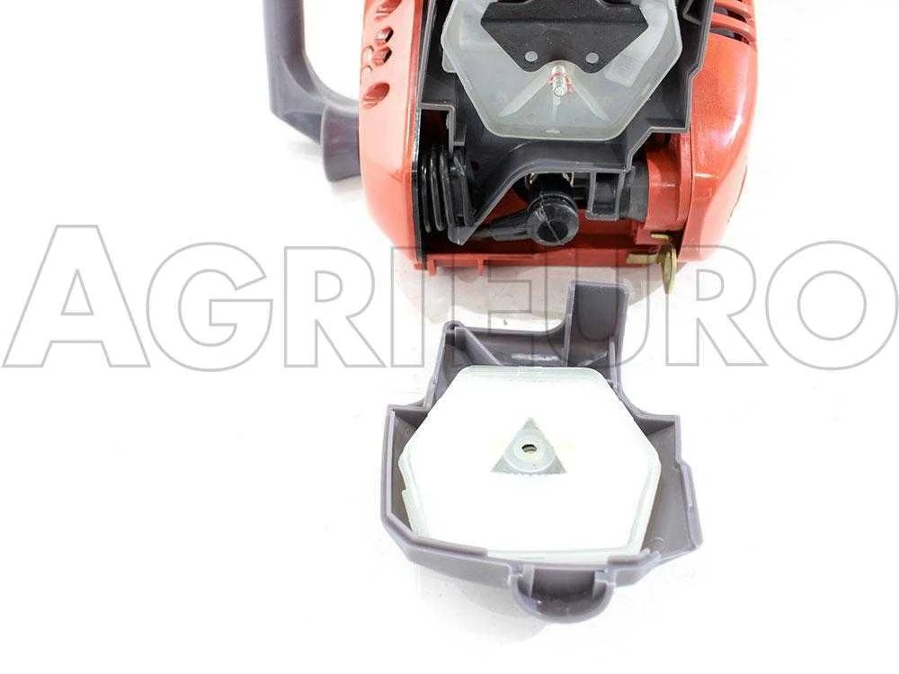 Cette tronçonneuse est équipée d’un moteur 2 temps à mélange de 25,4 cm3 avec une puissance de 0,9 hp. Le réservoir a une capacité de 0,23 l.