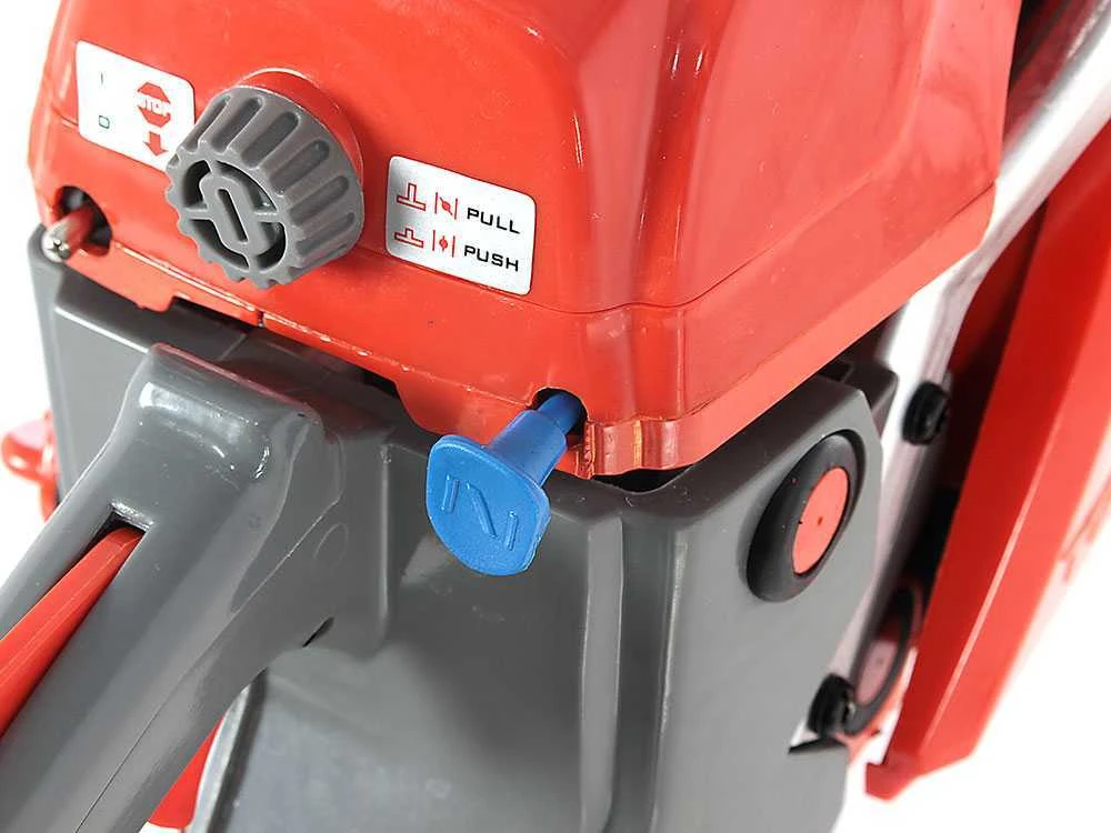 Sur la poignée sont positionnées toutes les commandes pour le démarrage et pour l’utilisation de la tronçonneuse.